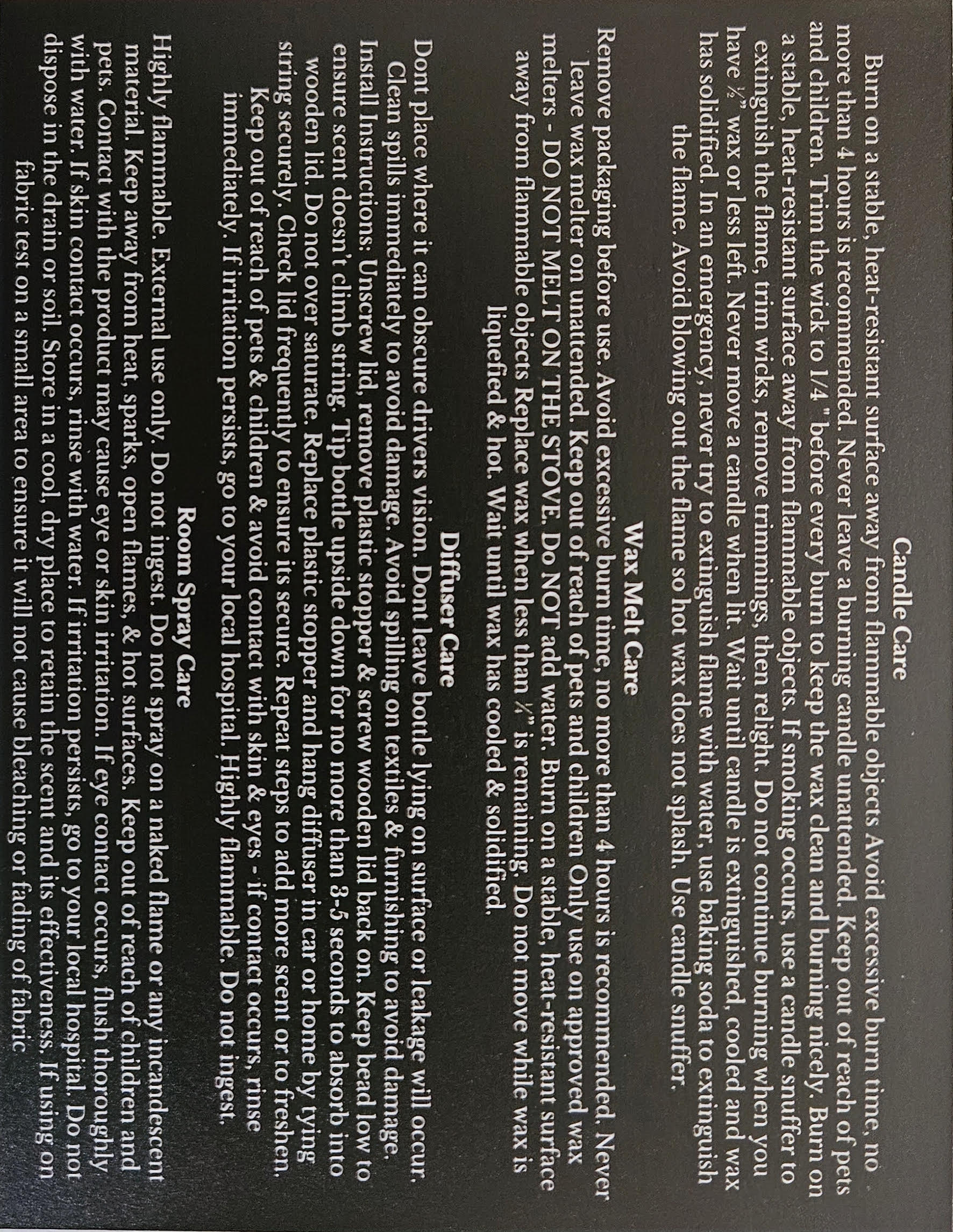 Our Candles, Wax Melts, Tarts, Car Diffusers, and Room Sprays are available in a wide range of captivating scents, perfect for any room, car, or occasion. Looking for the perfect gift? Our scented products make thoughtful presents for birthdays, holidays, and housewarmings. Plus, we ship throughout the U.S., making it easier than ever to bring premium fragrance into your life.